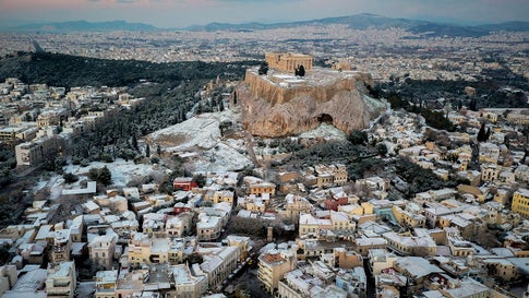 Rare Snow Has Turned Greek Ruins Into a Winter Wonderland This Week
